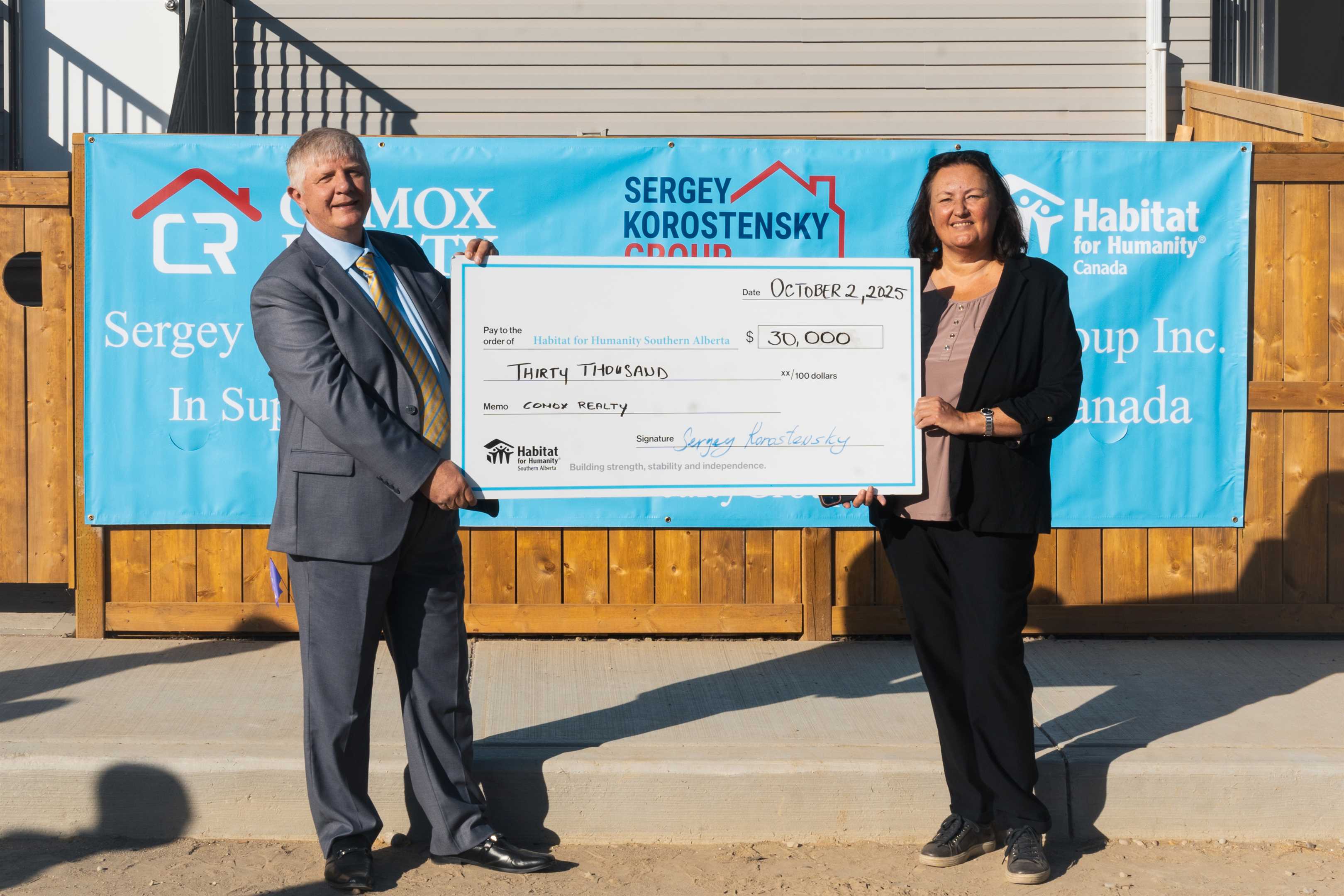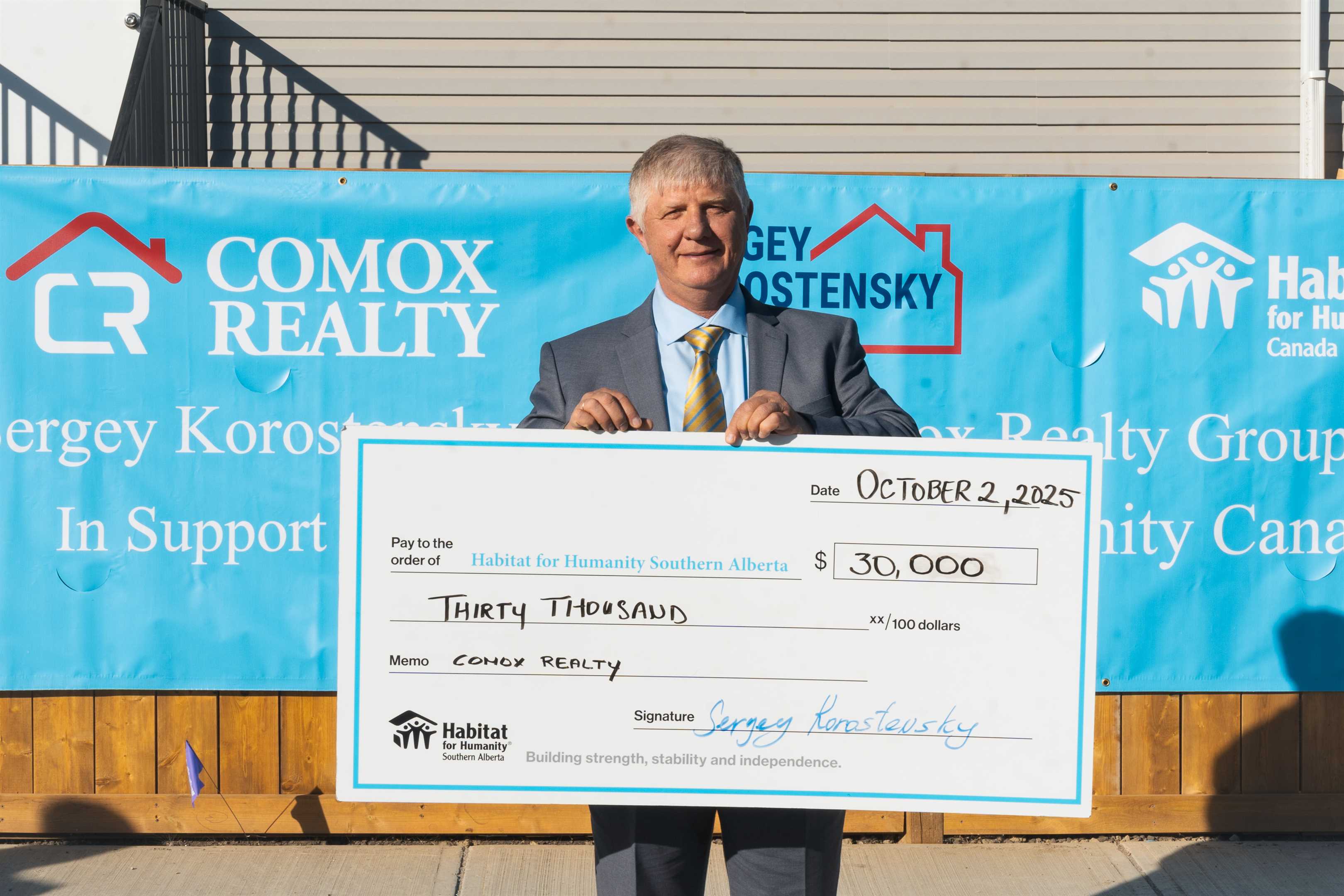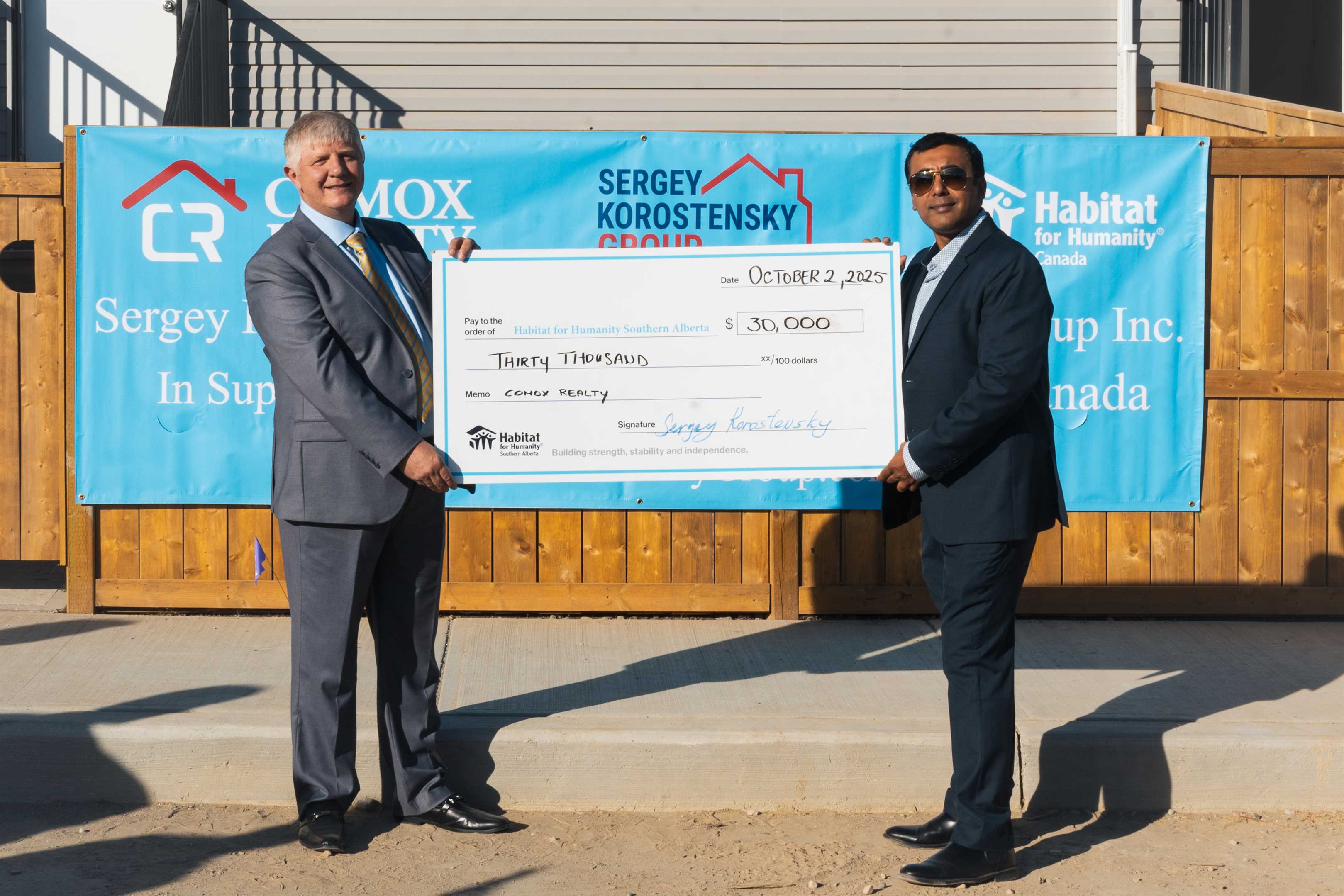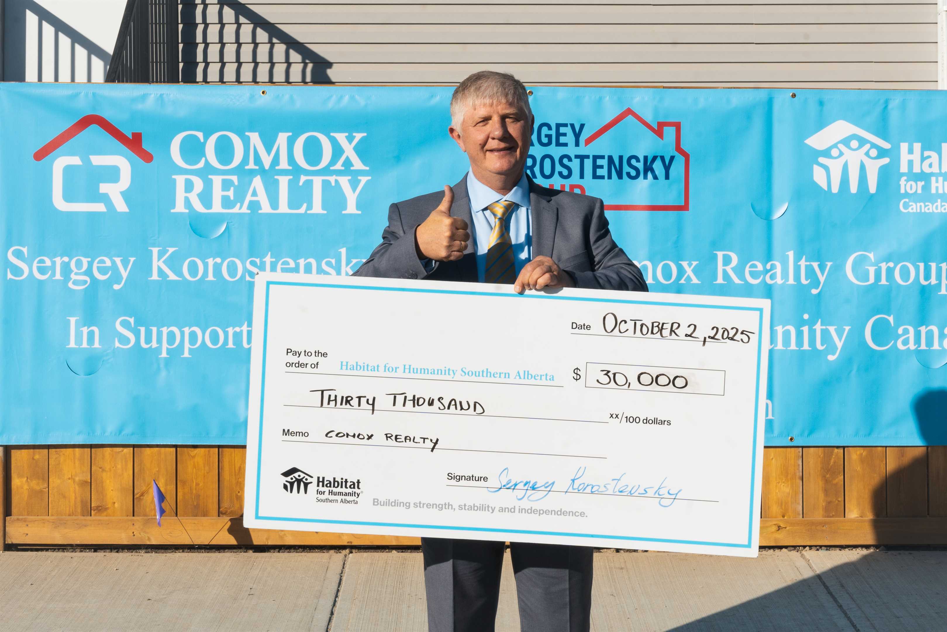 Sergey Korostensky and his team at Comox Realty have donated $30,000 to Habitat for Humanity to help families in southern Alberta access affordable housing.